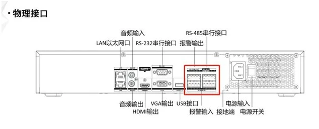 判断录像机是否有报警输入输出接口,可以从录像机后面板接口来判断
