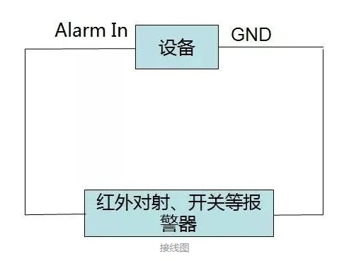 报警输入只需要接入一个开关量信号,所以不区分正负极,Alarm In和GND直接和报警输入设备的接线连接即可。