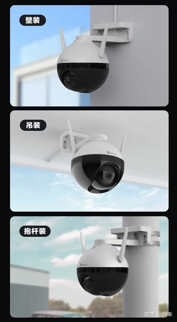 而室外监控,由于要面对更为复杂的环境和天气条件,需要有更安全稳定的固定方式,目前主要有壁装、吊装、抱杆装等。