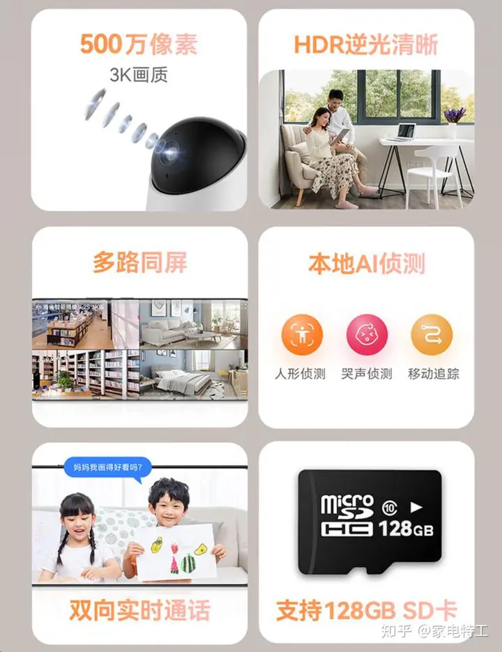 家用监控摄像头8Pro版内置了一颗五百万像素的高解析度摄像头。该设备具备实时双向语音交流功能,使得用户能够无视地理限制,与远方的亲朋实时沟通。此外,该摄像头采用了先进的智能回放技术,它能够识别并保存关键时刻的视频片段,同时自动过滤掉无关画面,这不仅提高了用户查看与检索录像的便捷度,也显著提高了操作的效率。