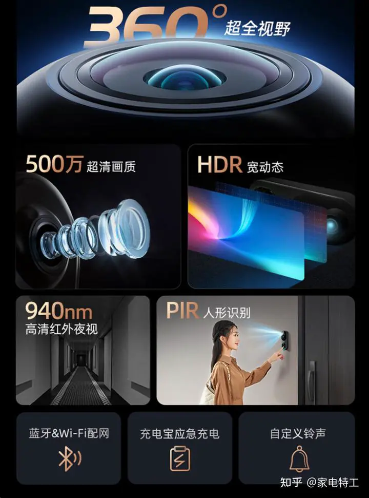 9、360可视门铃 6Pro 500万超清画质 家用监控智能门铃 电子猫眼摄像头