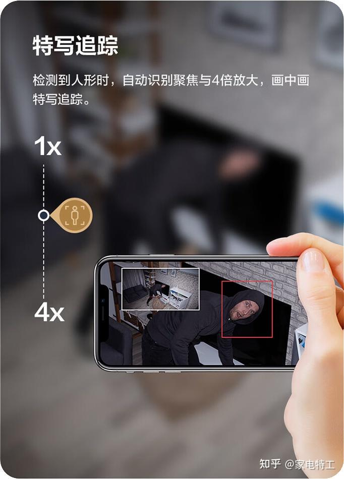 两颗镜头均支持人形侦测和手动追踪,旋转镜头还支持360°水平旋转和113°垂直视野查看。