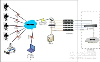 系统架构主要分为几个部分: 3G单兵视频布控终端、车载视频布控终端、3G视频管理服务器、3G视频解码器、公安视频编码器等。(系统整体架构如图1)