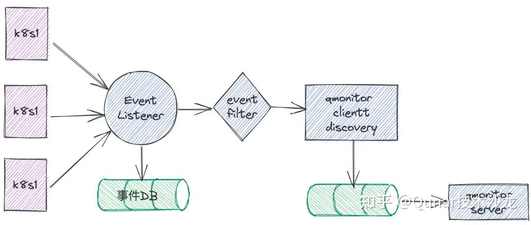 首先我们增加了事件监听器,用来监听和收集所有 k8s 集群的事件,然后将这些事件存储到 DB 的同时发送到 mq中,其他应用可以监听 mq 来拿到自己想要的事件。然后在 qmonitor 增加 client-discovery 模块,此模块可以监听对应的消息事件,然后动态的更替对应的 ip 和 meta 信息,更新的数据提供给 qmonitor server来使用。这样便能动态的发现和变更对应的 client 地址,而且对业务无感知。