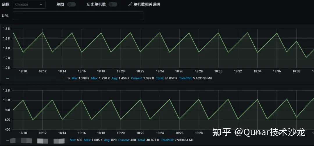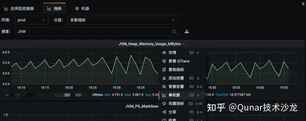 Watcher 在采集指标的时候除了记录每台主机上报的指标数据之外,还会自动聚合应用维度的指标,比如应用有3台主机上报了"myapi.qps"指标,那么每台主机都有自己的 myapi.qps 指标,同时会聚合出一个总的 myapi.qps 指标,而通常我们添加监控也是监控应用维度的 myapi.qps 指标,如果指标有波动想要继续排查问题,就需要看每台主机的 qps 是否有波动,这个时候就可以如下图点击指标上的 “单机数” 就会列出每台主机的 qps 趋势,方便用户定位根因。