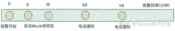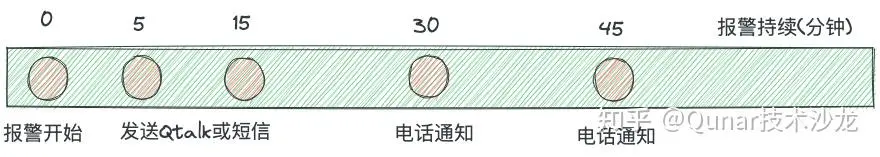 提醒升级是当一个报警开始发送告警通知时,一开始我们只会发送 Qtalk 提醒,Qtalk 属于弱提醒,但如果过了一段时间这个报警仍然没有人处理,就会升级成电话提醒,电话提醒则是属于强提醒。