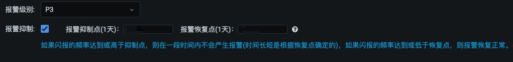 当前报警抑制的实现方式是观察一个报警一段时间内报警状态改变的频率,如果频率高于某一个点(这个阈值点是系统根据算法算出并默认提供的,用户可以自己修改)则会进入抑制状态,频率低于某一个点则会退出抑制状态。其中半个小时内的状态多次改变则状态权重递增。