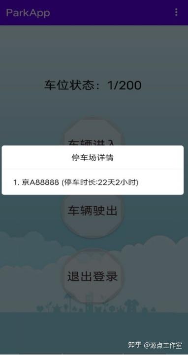 该界面显示的是车辆成功进入车库后再次查看停车场详情,该车辆已经在停车场中。
