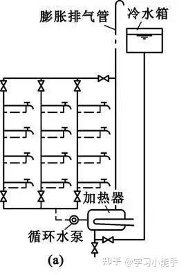 2、分类介绍:(1)开式热水供水方式在管网顶部设有水箱,管网与大气相通,系统内部的水压仅取决于水箱的设置高度,不受室外给水管网水压波动影响。该方式适用于室外给水管网水压波动大,用户用水水压要求稳定的情况。该方式的管道系统中,必须设置高位冷水箱和膨胀水管,或开式加热水箱。