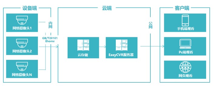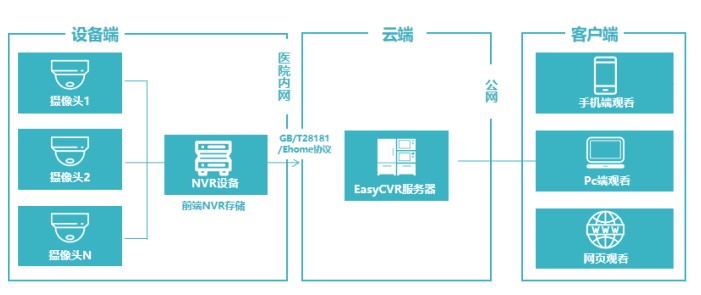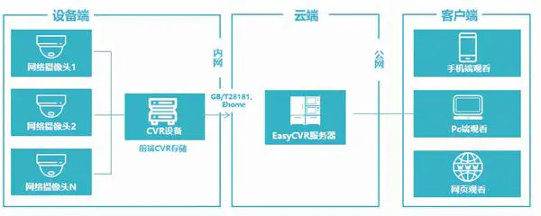 - 应用场景:所有安防监控系统搭建都支持,部署在设备端,存储在本地;通过GB28181对接EasyGBS,或者通过ehome协议、sdk方式对接,EasyCVR都支持服务端直接获取NVR录像进行回看。