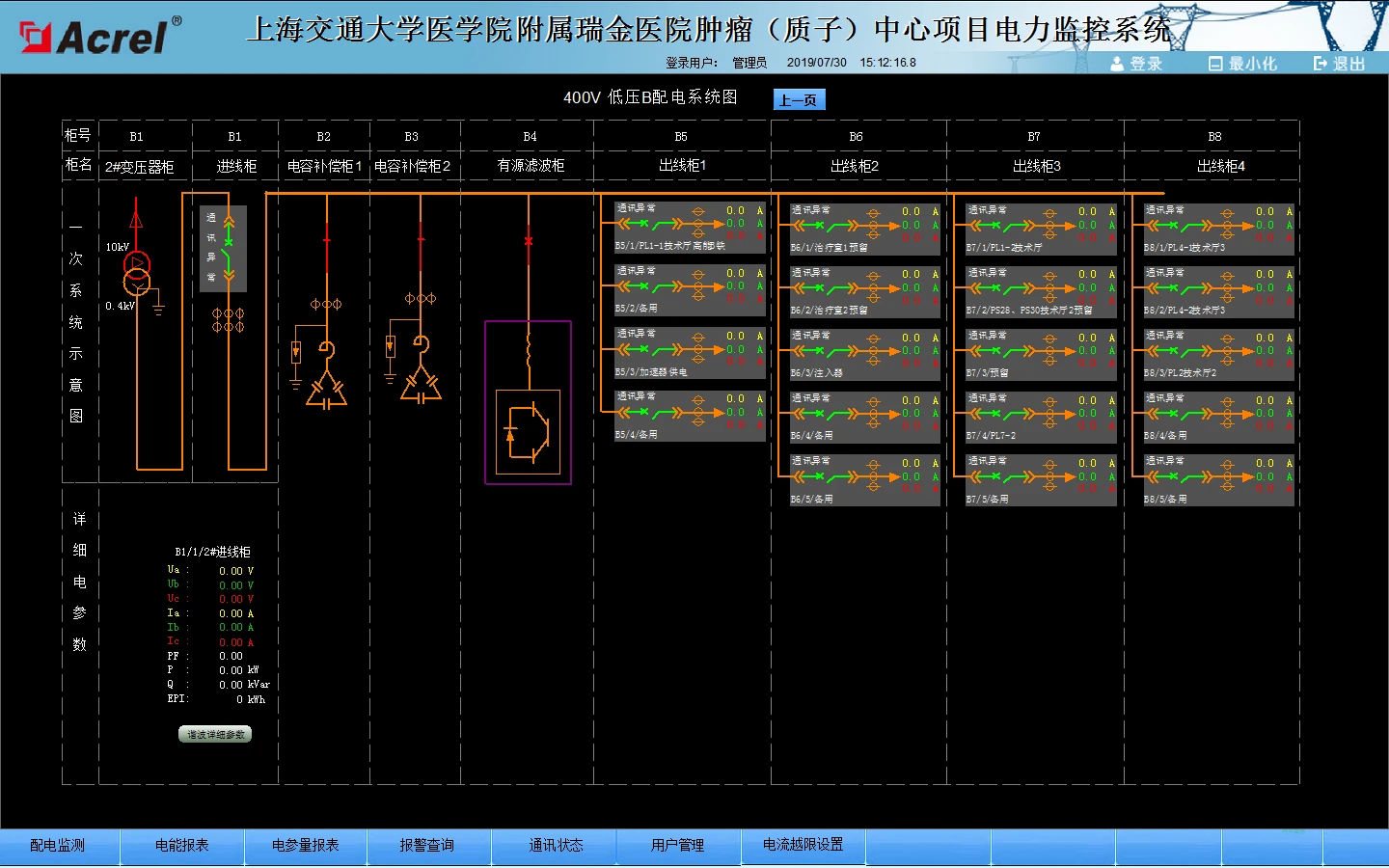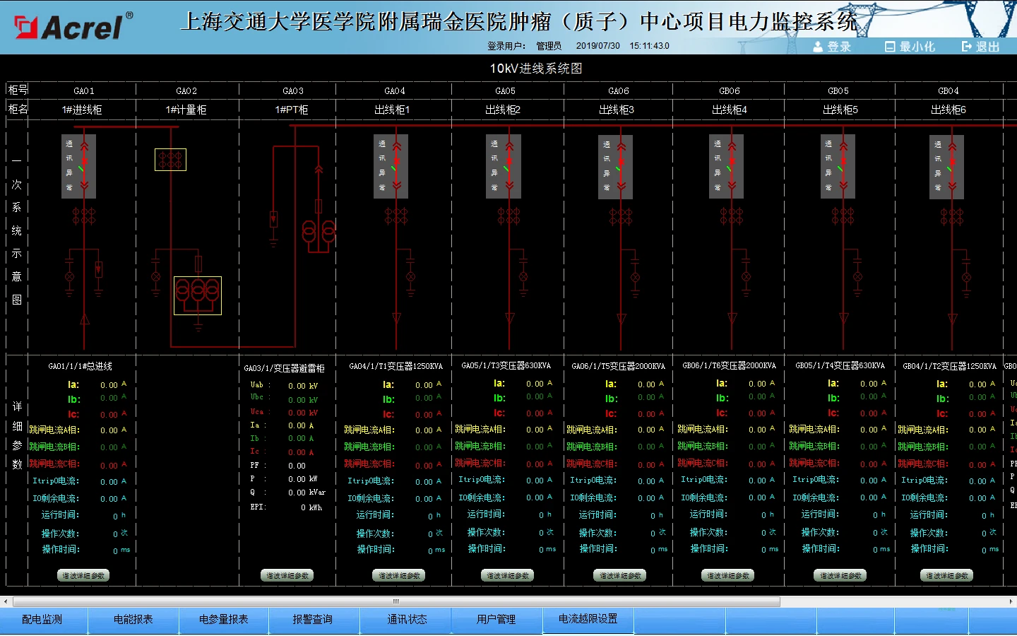 关键词:上海交通大学医学院附属瑞金医院肿瘤(质子)中心项目;10KV变配电所;综合保护装置;Acrel-2000;电力监控系统。