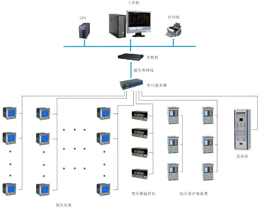 站控管理层针对电力监控系统的管理人员,是人机交互的直接窗口。在主要指置于值班室的工控机、显示器、UPS等。