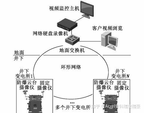 本文设计了数字视频录像子系统用于加强对井下各变电所及供电设备的实时监控,通过在电力系统平台中加装的网络硬盘录像机和现场的固定式及云台摄像头对井下所有供电场所及设备进行实时数字视频采集。同时配置大容量硬盘将所有录像数据进行实时存储,存储时间不低于一个月。数字视频录像子系统结构如图2所示。