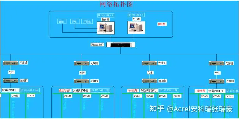 Acrel-2000Z电力监控系统采用分层分布式设计,可分为三层:站控管理层、网络通信层和现场设备层,组网方式可为标准网络结构、光纤星型网络结构、光纤环网网络结构,根据用户用电规模、用电设备分布和占地面积等多方面的信息综合考虑组网方式。