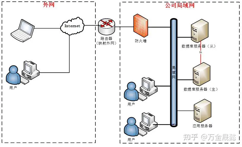 公司如果提供在Internet访问系统的能力,需要建立内外网访问的通道,建议外网采用独立固定IP(公网IP),在内网使用路由器作内外网映射,采用映射的方式访问公司内网(即公司局域网)的应用系统。具体网络配置建议如下: