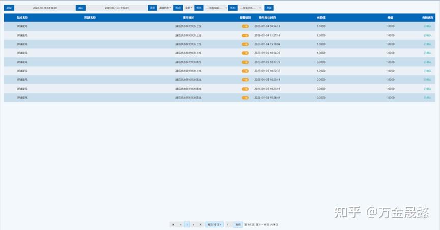 所有告警事件支持事件记录,记录信息至少包含:事件对象(仪表或网关点位)、事件类型、告警参数动作值、告警时间、告警等级等。所有告警事件可查询,支持多条件组合(时间段、关键字、等级、类别等)过滤查询,方便进行事件记录的快速查找和对比分析。