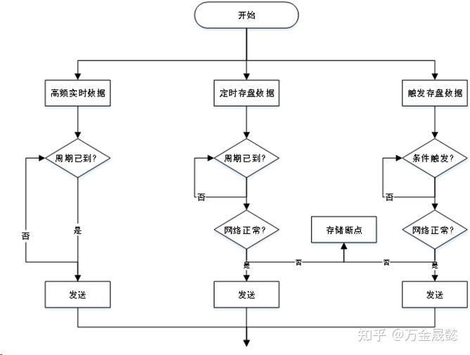 数据传输是将设备中实时采集到的数据根据系统的需求上传到服务器的过程,我们根据数据产生的频率、数据的性质对上传的数据进行了分类传输,一来可以保证数据传输的实效性,二来可以保证数据的连续性。数据主要分为三类:实时数据、事件数据和断点数据。