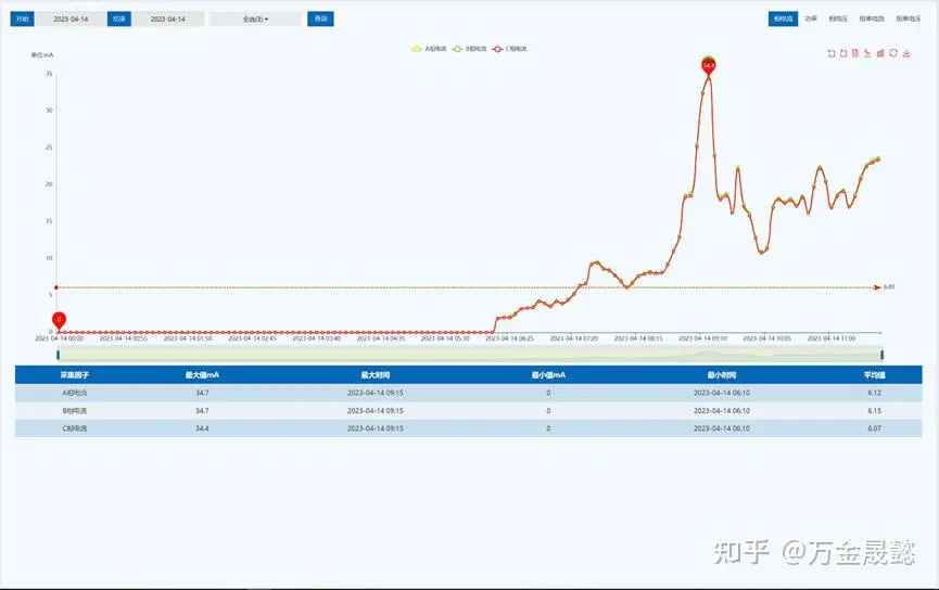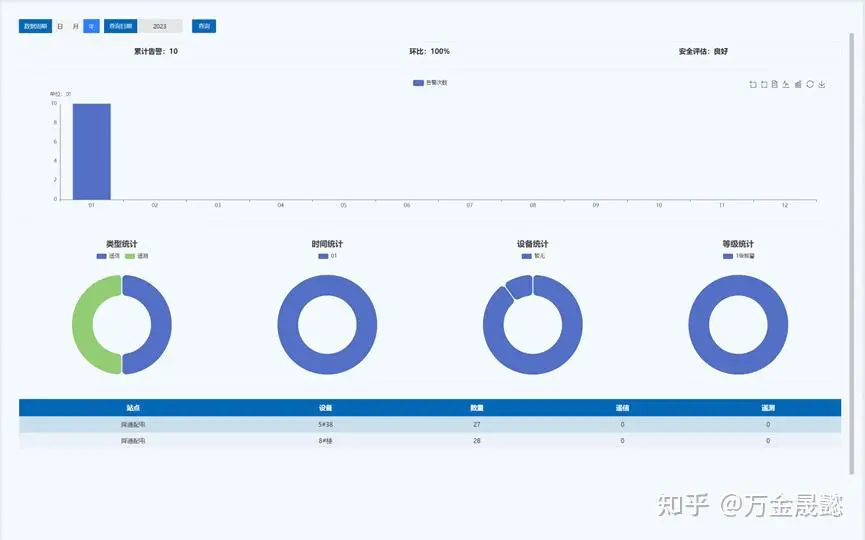 用户可在“预警预测”中,将监测站点的各个回路的检测数据与参考标准数据进行检测周期内比对生成偏离模型,将监测站点的各个回路的检测数据通过人工智能判断数据波动幅度生成狼牙模型,从而对回路进行风险评估;在“实时报警”与“历史报警”中分别查看报警信息;在“报警统计”中,通过对遥信、遥测、录波以及视频的告警数据的回放,还原事故的发生,分析事故产生的原因。