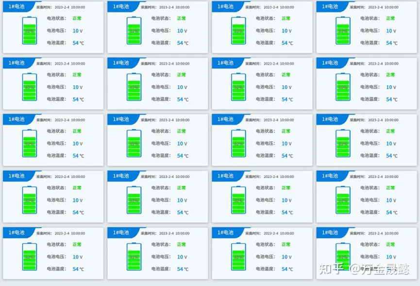 显示各站点的电池簇中的单节电池实时信息,包括电池状态,电压,温度。
