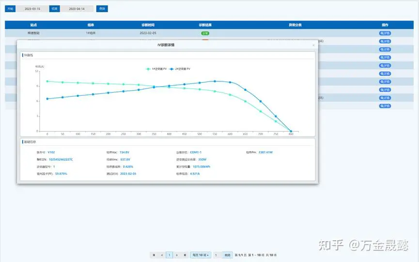 在“IV诊断”中,用户可查看单个组串发电情况,并查看每个组串中的逆变器的IV曲线以及逆变器信息。